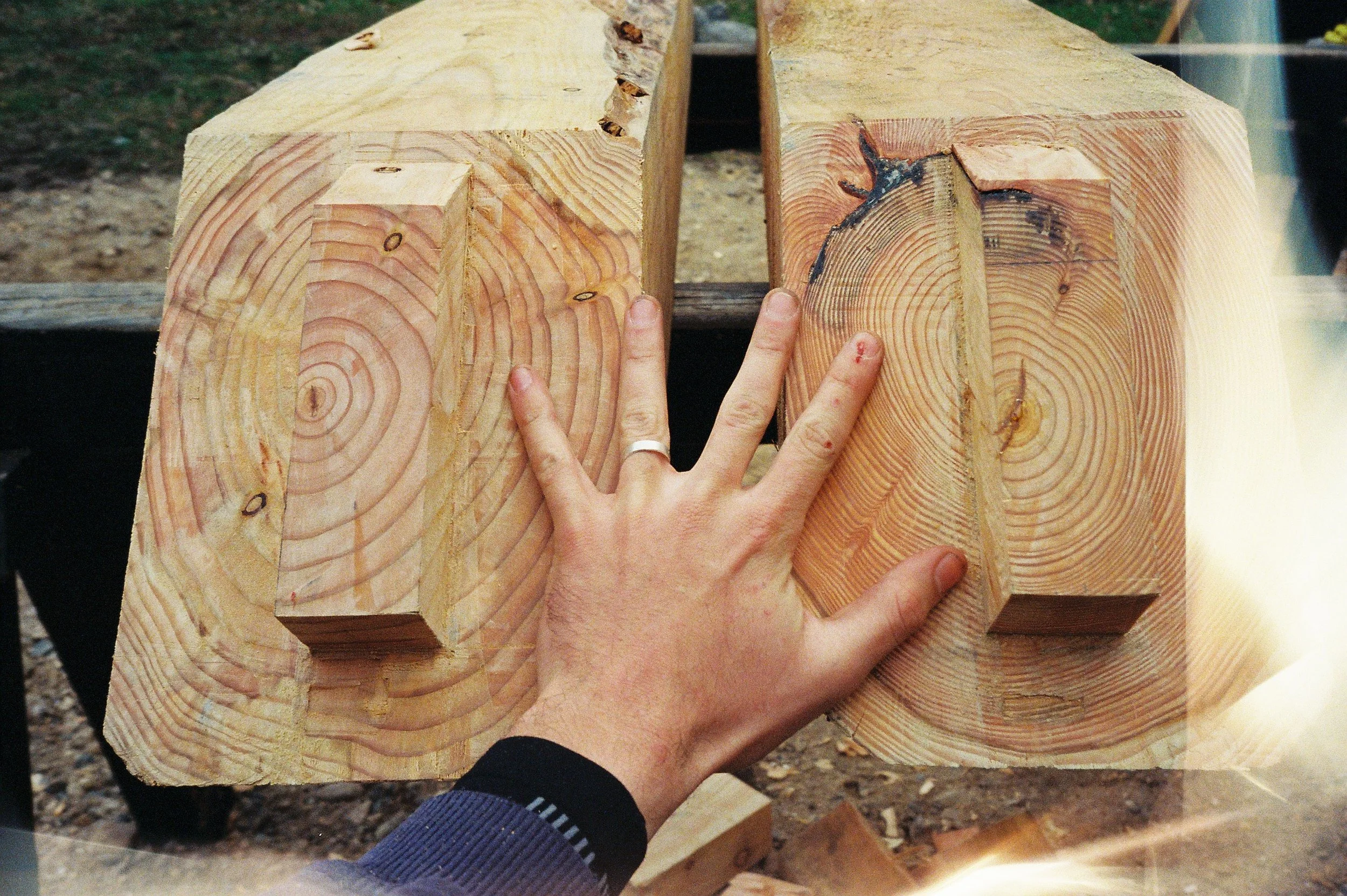 After a conversation with Hjerl Hede and Carsten the livestock keeper, I was given the opportunity to build a small goat barn in one of the lower fields of the farm for my thesis project, utilising the mended timbers to form part of the structure of it. These four posts were reappropriated in the structure of the goat house, one in each corner.
