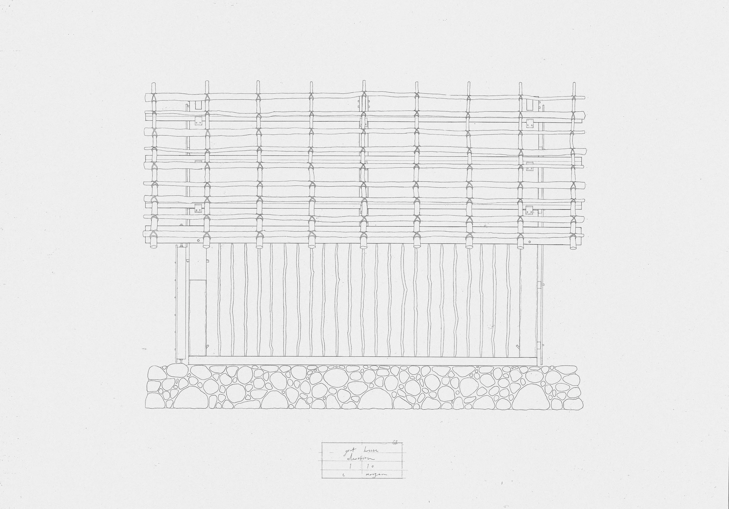 As a means of challenging the contemporary practice of the architect and the buildings that seem to rise, like a phoenix, from the ashes of a torched public-use electric scooter, I have designed and built this goat house at Hjerl Hede. This has been as an extension and enthusiastic endorsement of Studio 2D's previous work to date there. I have had conversations with a variety of people who have positively influenced my study of architecture, so to gain a greater insight and understanding of the approach to building in the present-day, specifically around striving for more sustainability in the practice of architecture and construction. The people I have spoken to have all had backgrounds in a variety of different methodologies of both art and architectural practice, but all share a common interest in construction. Undocumented conversations were also a significant part of the development of the project on a daily basis and with all manner of people that I engaged with. These dialogues and the important discussions that I recalled having had with others, were matters that I wanted to document in a more permanent manner in the manifestation of the goat house in its finished state.