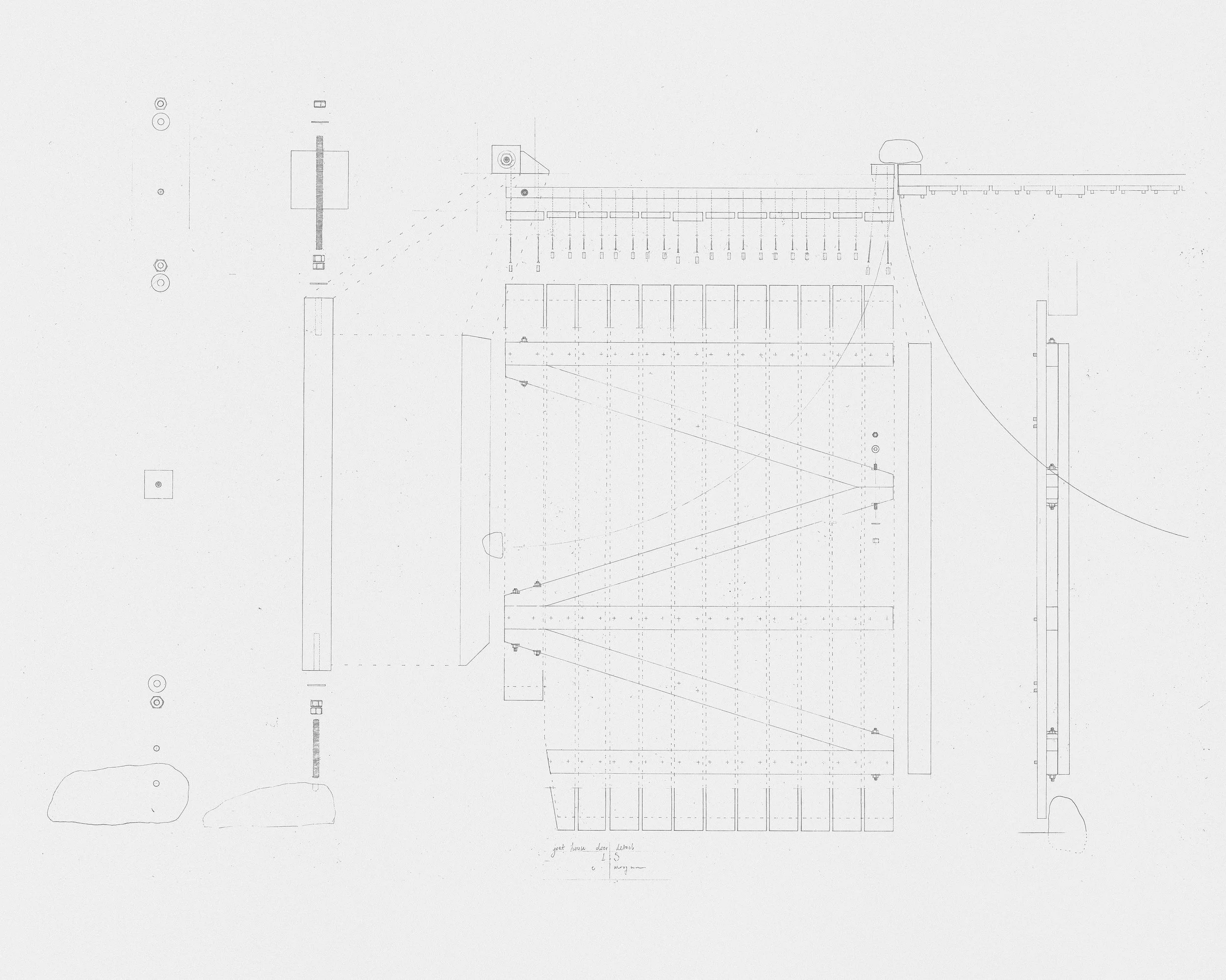 The design processes that I have followed are somewhat detached from the usual ones that apply in architecture. Design and construction processes have been merged. Initial drawings were made to detail aspects of the structure based on the assumption that the materials specified were going to be available. These were adapted, however, as variations became necessary, or complications with the methodology of the construction arose. Such an approach was to achieve a construction process that was directed as much by necessity as it was by preference. By way of example, the necessity of the approach to the construction of the goat house came from making do with and utilising resources and materials that were immediately available, the existence of which resources and materials, at the beginning of the process, were unknown to me. I have highlighted the occasions on which the construction process had to be adapted, as they arose, on copies of the drawings I took to site with me.